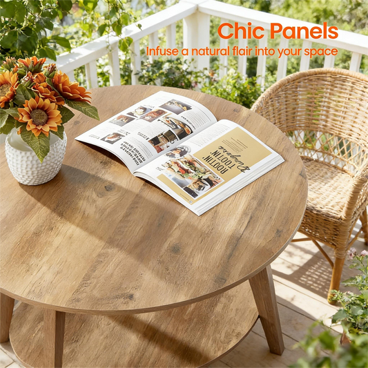 2-Tier Round Wooden Coffee Table