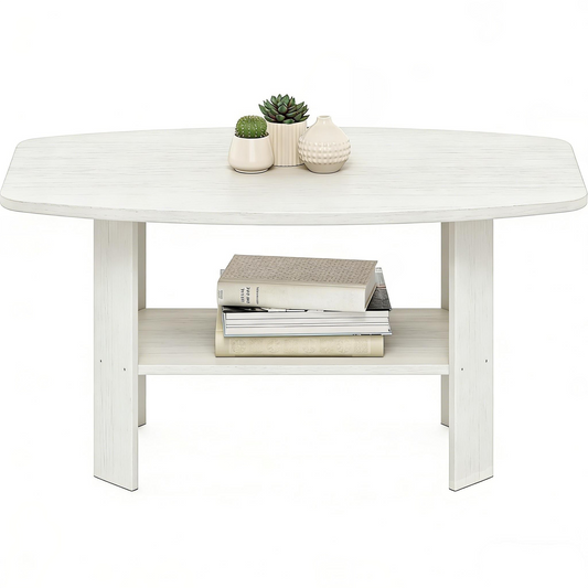 2-Tier Oval White Coffee Table
